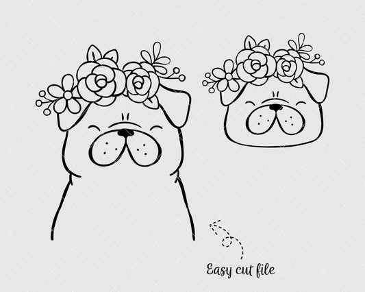 Pug Dog With Flower Crown SVG